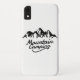 Schönes Design mit dem Bild der Berggipfel und dem Zitat "Camping der Berge". Ein perfekter Treffpunkt für alle Camping-, Wander-, Berg- und Naturliebhaber.