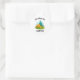 Camping Design Classic Round Sticker with customizable text. and background color.
