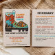 Plan an epic bachelor party weekend with this camping / hiking themed invitation featuring an illustration of a hiking boot with camping scenery inside it. Easily edit your event details and itinerary on the back of the invitation.