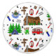 Grafik von Blockhütten, RVs, Camping-Tools, Zelt, Fischerboot und anderen niedlichen Grafiken.