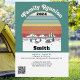 Familien Wiedersehen rustikal, Vintag und Retro-Camping Thema einladen. Das Hotel verfügt über einen malerischen Berg, Fluss, Wald und Hütte mit Retro-Vintage-Sonnenuntergang. Line Art und lustige Typografie. Organisieren Sie ein lustiges Wochenende, wo Sie sich bei einem Familienfest wieder mit Ihrem Clan verbinden können. Fügen Sie einen QR-Code hinzu, der auf Ihren Campingplatz, Ihre Karte oder Telefonnummer verweist. Auf der Rückseite gibt es Platz für weitere Anweisungen oder Details zu teilen.