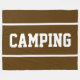 This sporty design features white athletic CAMPING text and sleek edge stripes against a bold brown background. The text and colors in this design can be personalized.