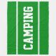 This sporty design features white athletic CAMPING text and sleek edge stripes against a vibrant bright green background. The text and colors in this design can be personalized.