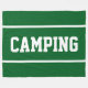 This sporty design features white athletic CAMPING text and sleek edge stripes against a forest green background. The text and colors in this design can be personalized.