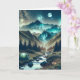 Geburtskarte für ihn oder sie. Eine wunderschöne ai Camping-Abbildung eines Zelt-Set neben dem Bach mit einem Berghang und der Nordlichter und Vollmond im Himmel.