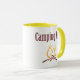 Eine schöne, solide Kaffeemaschine mit "Camping Tasse" auf ihr geschrieben und einem rauschenden Lagerfeuer. Wirf das in dein Camping und es wird immer bereit sein, wenn du es bist. Personalisieren Sie Ihre persönlichen Daten mit dem Namen Ihrer Familie oder Ihrer Ferienanlage.