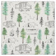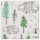 Watercolorkiefernbäume und Hand gezeichneter Camper, Zelt, Kanu, Mond, Feuer und Sterne! Für den Enthusiasten im Freiender Lieben, in der Natur zu kampieren, zu wandern, zu fischen und zu sein.