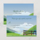 Eine ruhige Landschaft ist der Schauplatz dieser Hochzeitskarte zum Thema Camping. Im Vordergrund steht ein rustikaler Holzzaun, in dem der Schleier der Braut und der Bouquet im Gras liegt. Hinter dem Zaun, der an einem klaren Tag auf einen Bergsee blickt, liegt ein Zelt auf der Wiese. Die Rückseite zeigt die gleiche Szene mit einem Maurerkrug, auf dem ein Etikett mit den Initialen des Paares oder einem anderen Text angebracht wird. Die Namen des Paares und das Veranstaltungsdatum werden oben gedruckt. Ideal für einen Glanz, eine rustikale oder jede Hochzeit im Freien. Verfügbar mit passenden Produkten.