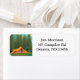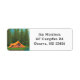 Camping-Thema mit schöner KI-Kunst mit einem großen Zelt auf dem See mit Kiefern und Bergen im Hintergrund.
