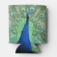 Pfau mit brillant blauen Federn und grünen und blauen Schwanz Federn. Stolz Vogel hat seine Federn im Schwanz voll verteilt. Bild auf Vorder- und Rückseite wiederholt.
