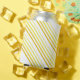 Gelbe Linien in verschiedenen fünf Farbtönen Dunkel bis leicht, von unten nach oben. Drei Sets Streifen sind diagonal auf beiden Seiten platziert.