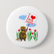 Button mit meinem Design einer Biberfigur hält ein Schild, das "I heart Nova Scotia" mit einem roten Herz und Blume sagt.