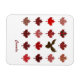 Blätter und Säulen aus roten kanadischen Ahornblättern und eine braune Elche. Jedes Blatt hat ein anderes Design oder Muster und unterschiedliche Rottönen.