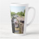Ein fotografisches Design eines Kanalschmalschiffs, das gerade das Schloss betreten hat und für die Schleusentore zu nah gewartet hat.