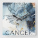 Cancer crab zodiac blue black gold text planets quadratische wanduhr