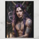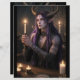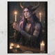 Gotische männliche Hexe darstellend ein Kerzenritual. Lila, heidnische Fantasiekunst. Doppelseitige Druckerei.