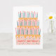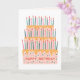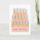 This birthday card features one big tiered cake with many candles.