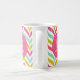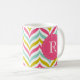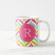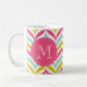 Farbenfrohe und moderne Monogramm-Tasse mit Zickzack Wellen-Mustern in heißen rosa, blauen und dunkelgelben Farbtönen mit hellrosa Sakallopkantenanhänger. Diese personalisierte Tasse wird perfekt sein.