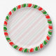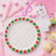 Rote und grüne Zuckerrohrmuster Rand. Teller zum Weihnachtsthema. Handgezeichnet Design. Party-Dekor.