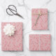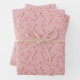 Ein nahtloses Muster aus rot-weiß gestreiften Süßigkeiten, die zufällig auf einem rosa Hintergrund angeordnet sind.