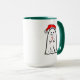 Niedlich und spukhaft? Dieser bezaubernde Geist, der eine Weihnachtsmannmütze trägt und einen Bonbons hält, mischt Halloween und Weihnachten perfekt.