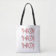 Schöne Tote-Taschen im Überdruck! Erhältlich in zwei Stilen und zwei Größen! Vintage Illustration Frohe Weihnachtsfeiergestaltung mit dem Wort HO!, in roten und weißen Pfefferminzbonbons geschrieben und mit heiligen Blätter und Beeren dekoriert.