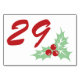 Entdecken Sie Ihr Party an Feiertagen oder Weihnachten mit diesen individuell anpassbaren Retro-Tischnummern mit roten Zahlen mit minzgrünen Akzenten und einem heiligen Blätter- und Beerenbild.