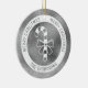 Desteis Silhouette mit weißem Bonbons auf einem Imitat silber graue Folie Textur Hintergrund (NICHT REAL FOIL). An der Grenze verläuft ein weißer Kreis, der lautet: "Frohe Weihnachten" zweimal und unten befindet sich ein personalisierbarer Textbereich für einen Familiennamen oder anderen benutzerdefinierten Text. BITTE BEACHTEN SIE: Die Folie ist nicht real. Es ist ein digital erstelltes Bild, das auf dem Produkt gedruckt wird.
