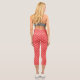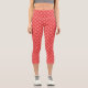 Ladys Capri Leggings in reflektierenden rosa Schnörkel-Formen auf einer Grundfarbe rot.
