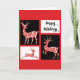 Candy Cane Reindeer, Holiday Grußkarte; Moderne/trendige Ferienkarte mit Tafeln aus Zuckerrohr, Rentiere auf schwarz und weiß, und die Stimmung Happy Holidays in der oberen rechten Ecke. Im Inneren der Karte ist leer, bereit für Ihre handgeschriebene Notiz, oder anpassen, bevor Sie kaufen und fügen Sie Ihre eigene innere Stimmung/Signatur.