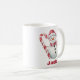 Feiern Sie die Süße der Saison mit einer Candy Cane Snowman Weihnachtskaffee Tasse! Diese bezaubernde Weihnachtskaffee-Tasse besticht durch einen fröhlichen Schneemann, der einen klassischen, rot-weißen Bonbonstock trägt und einen festlich rot-weißen Schal und Hut trägt. Einfach mit jedem Namen anpassen, um es zu einem perfekten Weihnachtsgeschenk, Weihnachtsgeschenk oder einer süßen Art zu machen, Ihr Lieblings-warmes Getränk zu genießen.