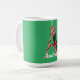 Feierliche Feiertage Kaffeekaffee Tasse mit einem kantigen, gestreiften Buchstaben A mit Zusatz von heiligen und anpassbaren Texten, um Namen oder Monogramm auf grünem Hintergrund hinzuzufügen.