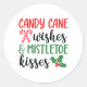 Candy Cane Wünsche und Mistletoe Kisses Runder Aufkleber
