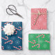 Bonbons und Schneeflocken Muster Holiday Packpapier Blatt . Einer ist blau, einer ist rosa und einer ist grün. Ideal zum Verpacken von Geschenken für Kinder oder Erwachsene. © ArianeC Illustrations-Alle Rechte vorbehalten