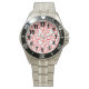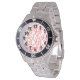 Die Armbanduhr dieses Mannes hat ein Weihnachtsdesign aus Bonbons in Rot und Weiß, verstreut über das Design. Wenn du andere bunte Bonbons magst, dann sag mir Bescheid.