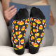Fun Halloween-Socken gemustert mit bunten Süßigkeiten aus Süßmais auf schwarz
