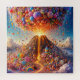 Stellen Sie sich einen pulsierenden, skurrilen Vulkan vor, der in einer fantastischen Landschaft ausbricht. Statt geschmolzener Lava breitet der Vulkan eine Kaskade aus farbenfrohen Bonbons und Süßigkeiten aus, darunter Gummibären, Lollipops, Schokoladenbarren und Regenbogensprinkles. Der Ausbruch erzeugt eine blendende Anzeige zuckerhaltiger Leckereien, die mit einem funkelnden, abschreckenden Effekt absinken. Der Himmel ist voller Süßigkeiten wie Konfetti, während die umliegende Landschaft ein mit Süßigkeiten bedecktes Wunderland mit Schokoladenstrecken und Baumwollwoll-Süßigkeiten ist. Die Szene ist in einem warmen, spielerischen Glühen gebadet, das die magische und fröhliche Atmosphäre dieser süßen Eruption verstärkt.