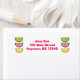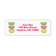 Auf den Etiketten stehen drei bunte Süßfrüchteschneiden in Kirsche, Zitrone und Limon. Personalisieren Sie sich einfach mit Ihren Namen- und Adressinformationen.
