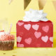 Ein Muster allgegenwärtiger Konversationsherzen mit Süßigkeiten, die "Liebe You", "Be Mine", "Kiss Me", "XOXO" und "Hug" in Rot, Rose und Rosa über einem valentinischen Hintergrund lesen