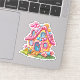 In dieser skurrilen Grafik sticht ein Haus aus harten Bonbons und blauen Zuckergüssen hervor, mit seinen lebhaften, gelben Wänden und dem rosa Dach. Mit rosa, roten, gelben und blauen, spielerisch verstreuten Bonbons erinnert es an einen Süßigkeitstraum, der Süße mit dem Charme einer märchenhaften Hütte verbindet.