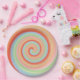 Candy Lollipop farbenfrohe Regenbogen Party Papier Teller, die einzigartig und lustig sind. Helle Regenbogenfarben in einem Spiralbonbons-Lollipop-Stil sorgen für Unterhaltung für Ihr Party. Eine Art. Ich entwarf diese hübsche Regenbogenfarbe in Prokretion und machte eine wirbelnde Technik in der Fotoshop im Lehm. Ich wurde von Lollipops inspiriert.