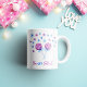 Funky Aquarell farbenfrohe Lollipop von Süßigkeiten auf einem Stock.lavender, lila und blau mit kleinen Herzen dekoriert. Personalisieren Sie Text und Foto mit nur wenigen Klicks.