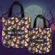 Smiley-Bonbons und schwarze Fledermäuse auf lila Hintergrund schmücken diesen niedlichen, personalisierbaren Trick oder eine Tasche.