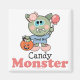 Ein niedliches Bonbonmonster mit einem Süßwarenbogen, der einen Lollipop windet und eine Leckerei fordert, während er einen Trick hält oder Kürbis mit Schokolade und Süßigkeiten, die von ihm überfließen, verwöhnt. Dieses Monster ist niedlicher als beängstigend und trägt ein hellblau zu Shirt, das Leckerei Me sagt. Ein niedliches Chrissy H. Studios Original Halloween Design auf Shirts, Kleidung und mehr Waren.