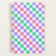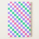 A vibrant checkerboard pattern featuring alternating pastel purple, pink, and green squares against a white background, creating a playful, colorful effect.