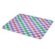 A vibrant checkerboard pattern featuring alternating pastel purple, pink, and green squares against a white background, creating a playful, colorful effect.