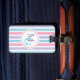 Pastel blue, purple and pink candy striped personalised luggage tag. Make your bag stand out. Personalise with your initials on front and contact details on reverse.