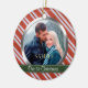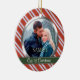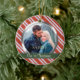 Dieses Weihnachtsschmuck zeigt Ihr eigenes Foto in einem weihnachtlich rot-weiß gestreiften Muster, das einen innen silbernen Rahmen hat. Ein grünes Banner hält Ihren personalisierten Text, lassen Sie ihn sagen, was Sie wollen! Die andere Seite hat den gleichen Streifen mit zusätzlichem Text auf der weißen Innenseite. Ein elegantes und festliches Sake-Geschenk für Neuvermählte oder ein Paar.