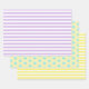 Pastellfarbene, gelbe und lila Streifen sowie Lollipop-Muster auf Set mit süßen Geschenkpackungen.
