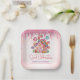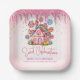 Sweet Celebration Candyland Kindergeburtstag Party Papier Teller. Design mit Kalligraphie Drehbuch ''Süßes Feiern'' in trendigem Rosa, Süßes Haus auf pastellrosa Hintergrund mit bunten Sprinklen. Personalisieren Sie mit einem Namen und danke Ihnen Nachricht.